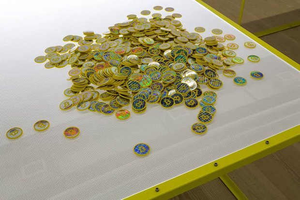 Elsewhere around the gallery, Sawtell has scattered smaller works. Focal Point’s large glass facade hosts colourful vinyls of the 1903-designed British Standard Kitemark, a now lesser used symbol of quality and British design and industry less. The piece #STANDARDISER_SQUATTER features the gallery’s display cabinets sealed up by a security firm usually hired to secure vacant buildings. Inside a huge quantity of Sawtell’s take on the unregulated and anonymously traded virtual currency Bitcoin have been stored. Two new issues of Sawtell’s free broadsheet series have been created especially for the exhibition. One depicts the routes of under-sea network cables across the globe, the other a visualisation of a solar-powered drone craft. There are a lot of different issues and ideas going on in this exhibition, and the audience aren’t force-fed explanations or meaning, and are instead encouraged to create their own connections between works beyond the obvious. It’s an exhibition that provokes questions rather than aiming to answer them (Is ownership relevant with regard to the internet? What is the potential of making resources, even dangerous ones, available to individuals? Should we police the web? Will humans ever tire or accumulation and consumption?) and a brave, uncompromising exhibition from such a small and newly opened gallery space.