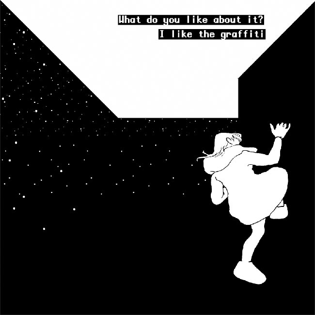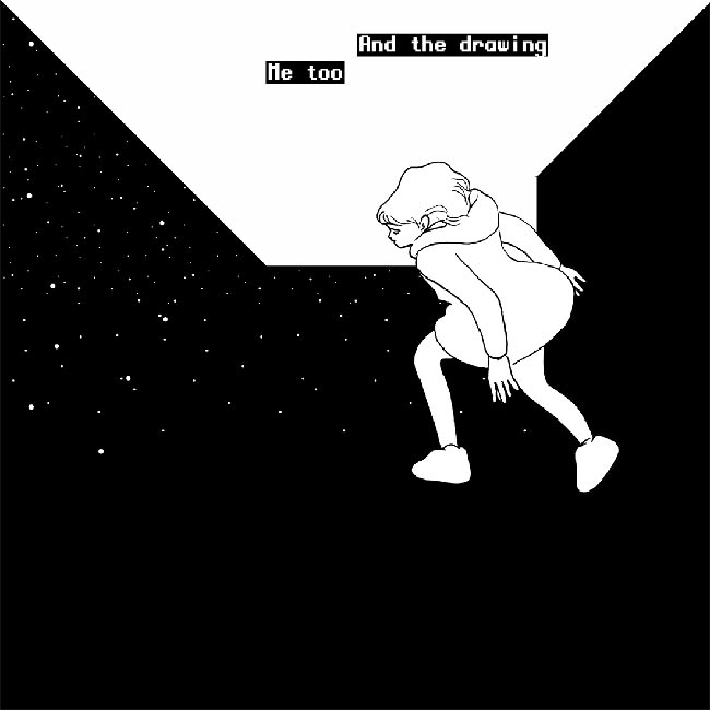 2001 is designed to examine how the image – the icon – functions in a comic book narrative. It is, primarily, a deconstruction of form. The panels are there, but invisible. A black background, with a near-imperceptible vanishing point, perverts the reader’s perspective, which they must presume runs parallel to the drawn figures; however, the further we scroll the more the perspective tilts in-between panels. The reader is therefore presented with a collection of abstractly juxtaposed images and must assume some responsibility for their navigation. In the same interview, Larmee talks about how the images “become screens for projection,” and how the artist offers himself “as such a screen and I accept all that is projected on me.” We can return here to the Modernist way of thinking, recalling Clement Greenberg’s essay Modernist Painting: