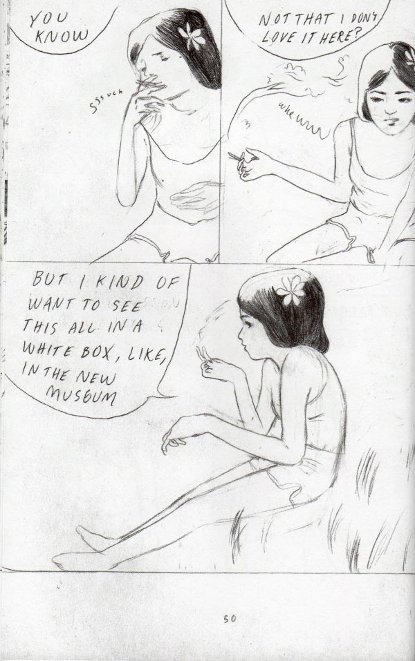 Nevertheless, subtle evolutions in front-end web development have seen the structural elements of a webpage converge, integrating into a more holistic interactive design: creating a website in which panels merge into a single immersive interface. Artists such as Austin English, Jason Overby and Caroline Bren, all of whom published regularly on the now-defunct comics blog Comets Comets (a play on the magazine Comics Comics), are indicative of this evolution. They are part of a small movement of comic writers and illustrators whose focus has less in common with the history of comics than it does with the canons of art history. Comics are pulp fiction in the traditional sense of the phrase: cheaply printed on coarse, low-grade paper. They are as ephemeral as their tales. The canon is easily (and often) reimagined. For instance Overby, the oldest of a group characterised by its youth, has regularly exhibited in a gallery environment as a contemporary artist. Critic Andrei Molotiu describes his oeuvre as being constructed “from minimalist panel compositions and bits of collage to create conceptual narrative. His works call to mind the work of Russian avant-garde artist El Lissitzky and the metaphysical animations of Robert Breer.”