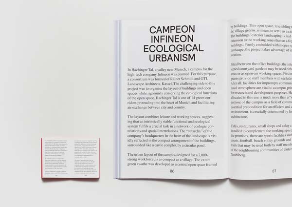 The brief was formulated in a very open way. A book concept should be developed for the comprehensive monograph of the work of Rainer Schmidt Landschaftsarchitekten + Stadtplaner, this was to include a range of independent essays.