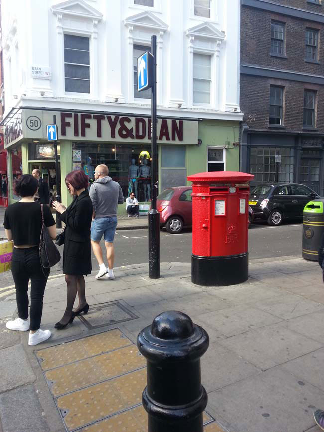 Royal Mail post box (at the intersection of Dean street and Old Compton street):