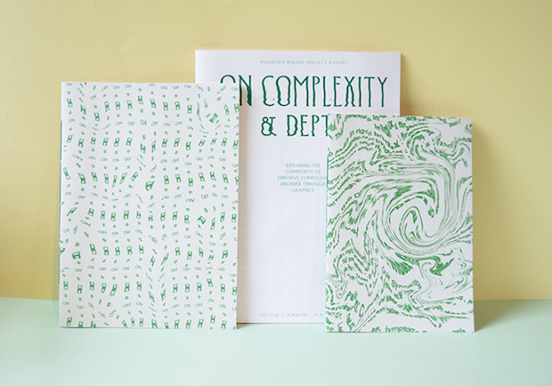 On Complexity and Depth was my final project for my MA. I chose to work on the topic of Obsessive Compulsive Disorder since mental health is an issue I am really interested in. This is a really complex disorder that presents itself in a person in very different ways throughout their lives and can also vary from mild to extremely severe. Although I worked with particular examples of the condition to make the publications less abstract and more engaging, I did pin down a number of elements that can be seen throughout every type of OCD.