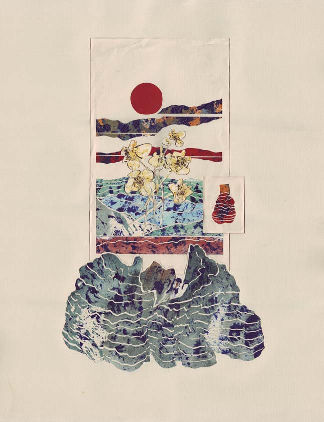 It is mostly a matter of finding the right materials for the individual textures and feelings of each piece. Also, I have no formal training in art so I have never been told not to use this or that. Oil paint works fine on paper if you learn the subtleties of it; the same goes for dyes, waxes, and tapes.