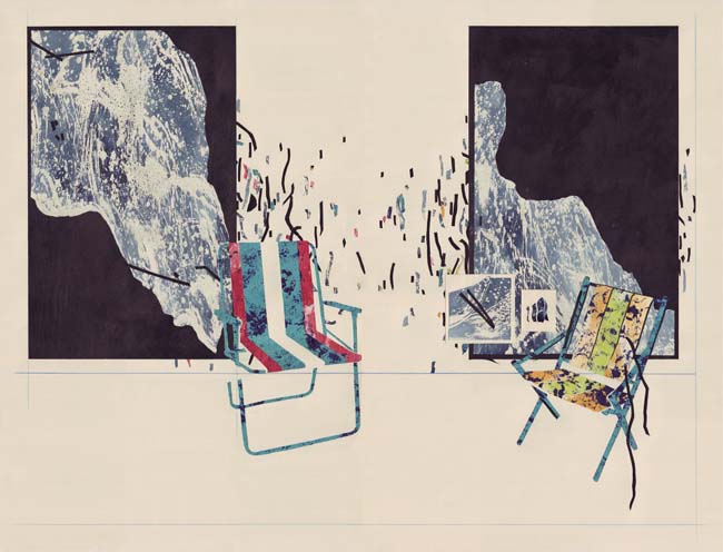 I enjoy creating rules, if only to end up breaking them. I think of it as a framing device that I enjoy starting off with. I think it says a lot to the viewer about what the artist wants you to see. I am attracted to compositions that are ‘contained’ within a space; as you can see in most of my pictures, there is a point at which I tend to break out of that mode, and that is me consciously breaking my own rules. It is a way of keeping things fresh and finding new routes to explore pictorially.