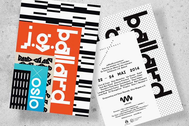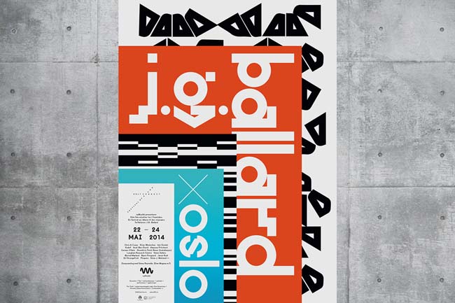 When we first heard that the festival’s theme would be J.G. Ballard we had no idea quite how challenging it would be to come up with a decent visual identity. It turns out that dystopian visions of the near future can be a concrete highway to cliché hell. It wasn't until the hidden layers of this particular festival were revealed to us that we were finally able to grab hold of a convincing and flexible design idea. As it turned out, the key to this festival is pitting Ballard’s work against Oslo’s recent architectural facelift. By placing Ballard within the context of Oslo’s contemporary urbanisation, we finally had a hook to hang it on.