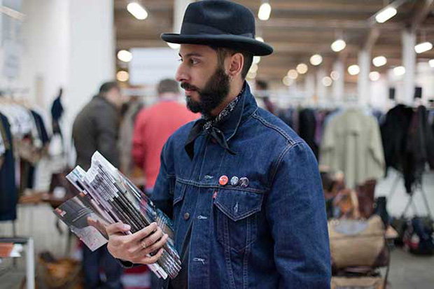 There we were, at the latest instalment of Jacket Required, if not the UK’s biggest then certainly it’s coolest trade fair for menswear. A trade-only event, it takes place twice a year, once in late January / February and and again in late July. Launched in Spring 2011, the show has grown from an almost family-and-friends affair in a gallery-come-event space off Arnold Circus, to this epic, sprawling happening occupying what seem like football-pitch size floors in The Truman Brewery on Brick Lane. Having spent a couple of seasons in the medium-sized basement of the glamorous grade two listed art deco Bloomsbury Ballroom, it’s hard to imagine that this show can grow any bigger.