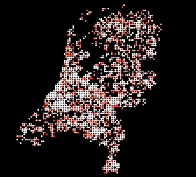 As well as the studio, the collective also runs LUSTlab, a research laboratory, situated down the street from the studio and founded in 2010, in order to develop new communication tools and physical products using digital content. 2014 has seen the lab create Hyperlocator, an installation for the GEMAK building in The Hague, a heatmap outdoor installation highlighting the spatial organization of social life in the Schilderswijk district in The Hague.