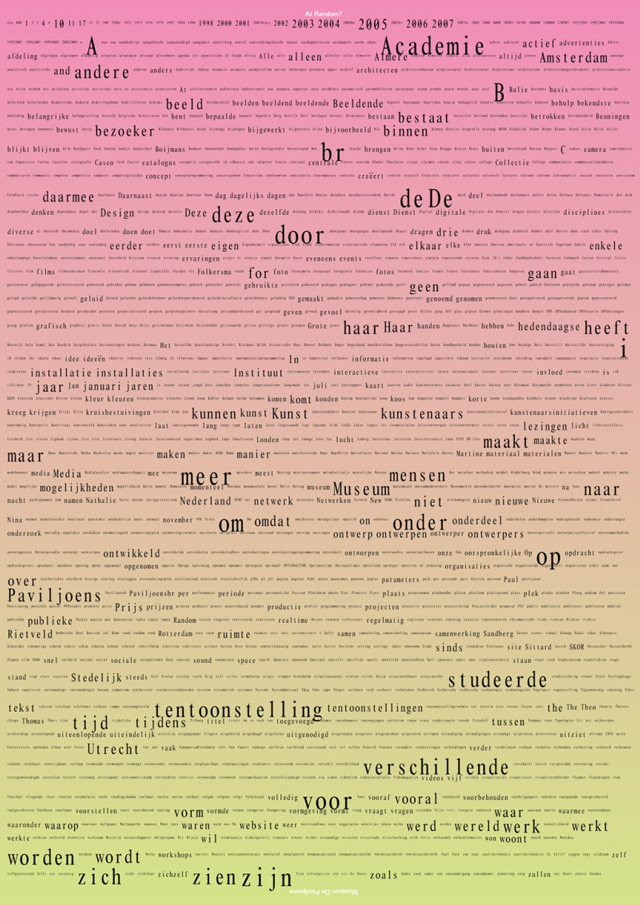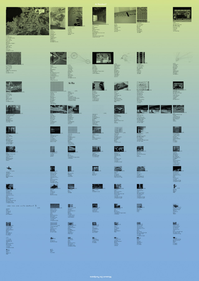 One project that springs to mind when talking about playing off randomness and audience interaction was At Random? Networks and Cross-pollinations, an exhibition curated by the Museum De Paviljoens in Almere, Netherlands in 2007.