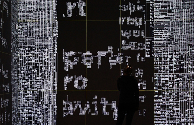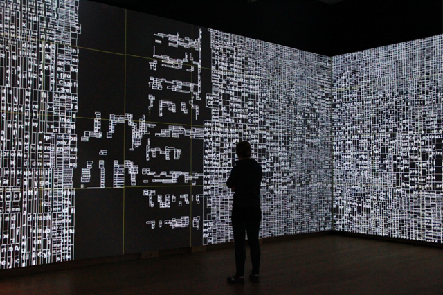 “Maybe one of the biggest problems with new media work, is that its so easy to achieve an effect” Nieuwenhuizen remarks, continuing the theme, “you can work with light and movement and something happens there – the ‘wow factor’ is easy to achieve in that sense, but what is so inherent in this type of media that you can add so many layers of information, experience and dynamically evolve things – it’s so much more interesting to investigate this aspect of new media.”