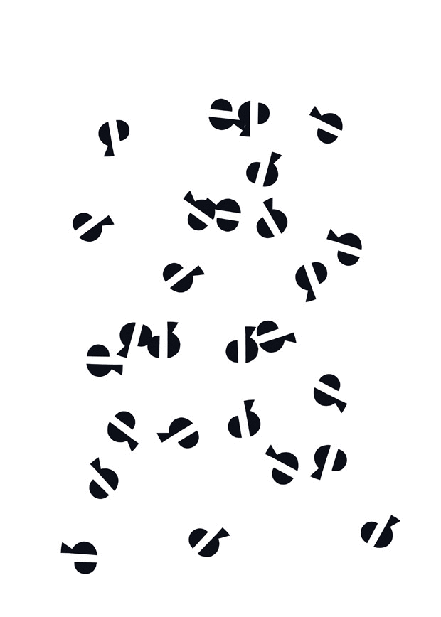 A central figure in the original concrete poetry movement Hansjörg is best known for his Typoems, Typoactions and the Alphabets which first appeared in 1961 in a series called the First Alphabet. He began the Last Alphabet in 1968 but was too busy publishing and lecturing at the time to complete it. Having resumed work on it in the past couple of years we chose the letter e and its negative space “the full and reduced letter” for the The New Concrete and although it’s no longer printed on a letterpress press it still has a sense of seamless continuation from the previous letters.