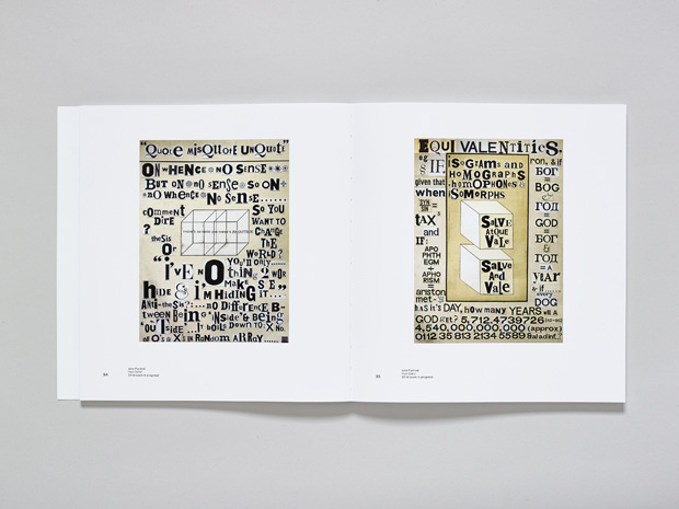 Made of off-cuts from previous projects, these two images act like an archive: he’s separated each letter and cut them into tight squares the same way letterforms sit within the original hot metal blocks of type. Each separate bit of paper shows its age by how yellow it is, and the overall typography is reminiscent of the kind used in ransom notes, a mixture of upper and lower case, bold, small. It’s discordant but works together. We liked how he’s restricted the poetry to the available letters he’s got in the studio, the humour in his writing, ("If every dog has its day how many years will a god get?") and the way the Dingbats look like snow. The work’s spontaneous even though you know the painstaking process it takes to line up the type like this.