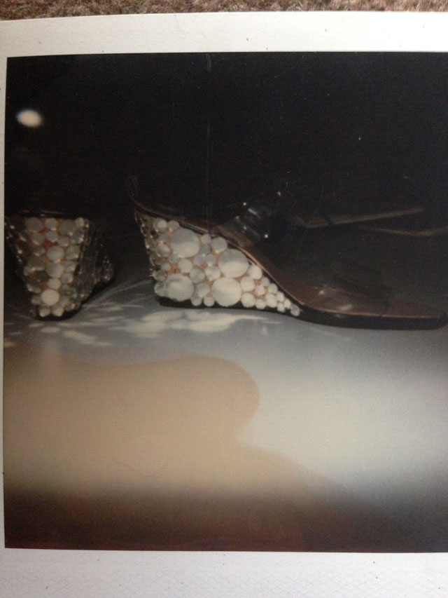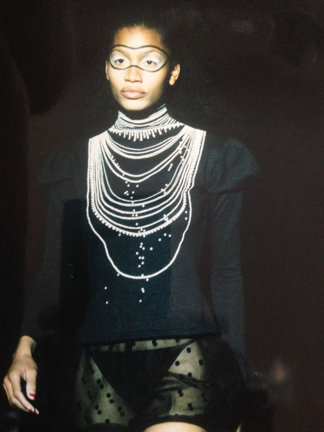 Never intimidated by fashion or labels, Sherry would cut tags right out of newly purchased Comme des Garçons T-shirts. Flat (men’s) shoes for her, glittered heels for the models, the ‘wedge’ being a re-occurring favourite. She‘d plan her collections with tiny drawings that she never seemed to really enjoy making – her strength was always hands-on, through discussions, and draping and chopping bits off garments.