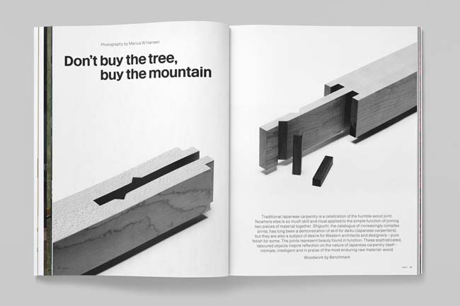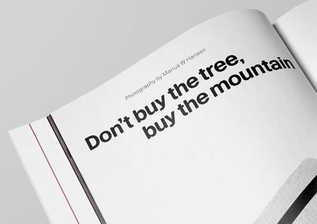 Launching an independent magazine with a tiny team meant the budget was very tight. There were many photographers involved: Scheltens & Abbenes, Marius Hansen, Osma Harvilahti, Angus Mill, Angela Moore, Kalle Sanner and Matthew Donaldson. Their support and resourcefulness was critically important. Issue 1 needed to be a strong statement of intent: both editorially and design-wise. We needed to take a long-term view from the beginning. That's why MDR's bespoke fonts had to be in place.