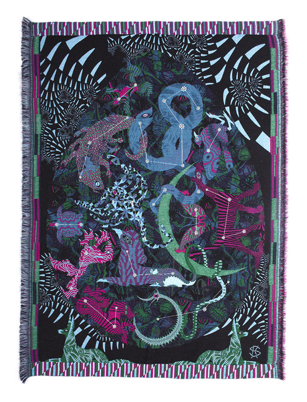 Meanwhile, Saksi's Hypnopompic weavings have just gone on display at MUMEDI design museum in Mexico. His illustrations have a jaw-dropping effect at scale on vast wall-hangings but also shine on a smaller scale – he recently collaborated with Marimekko on a range of products from garments to teapots in the Marimekko SS15 collection.