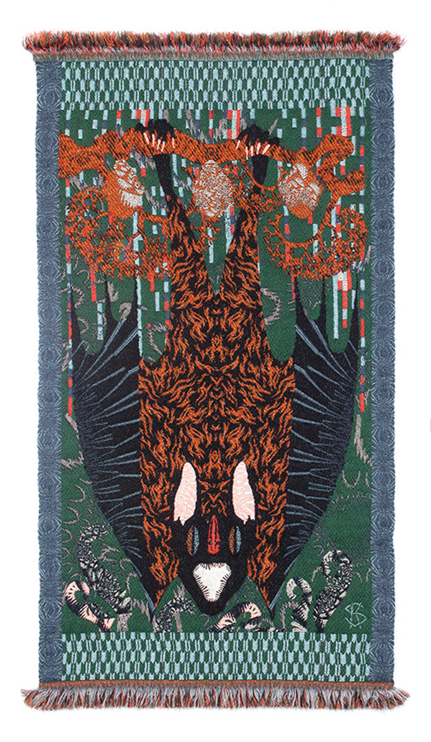 It’s not uncommon to see illustrators and graphic artists applying their skills to other media and making products, but few do it with the magnificent aplomb of Kustaa Saksi. As a sequel to his Hypnopompic tapesry series, he has just launched Reveille, a mini collection of Jacquard woven wall hangings. They are, he says, “inspired by awakenings, mornings and spring, featuring bats, moths, constellations and an egg”.