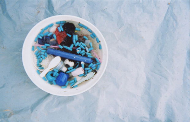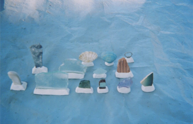 This is an image of things we found and saved: different shells (washed up far from any beach), tiny openable plastic shells, some rose lipstick packaging, a Barbie pearl-white hairbrush, a vintage Fanta label, half a glass horse, hundreds of cyan soft-air bullets, colourful pieces of glass, and bones. Time and sea water makes rubbish interesting and somehow sophisticated.