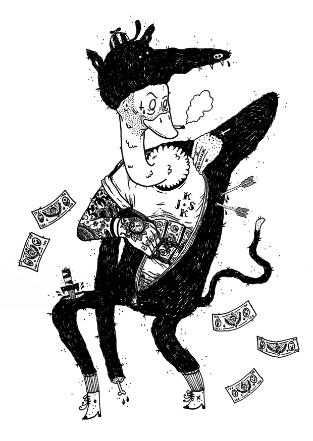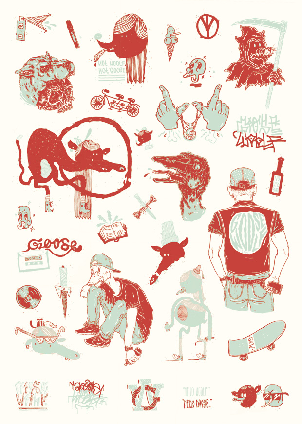 I come from an illustration background, and I always imagine a project through a sketch or an illustration for my inner eye. I started university as an illustrator but then I got into all the new things about typography and graphic rules, and I somehow lost the emphasis on illustration along the way. I focused on editorial design, printed work and the beauty of finishing. Illustration became a tool – I scribble a lot, and use it to preserve new ideas and thoughts. Recently I rediscovered it as something that I need, and something that I do for pleasure – not just out of necessity. One result of this process is the on-going collaboration with a good friend of mine which we call Goose & Woolf. I try to keep my illustrations free from strong concepts, and I try to use them for jobs with a wide range of visual possibilities and solutions. One reason I love editorial design is that, within a magazine or book, you can use everything – illustrations, photography and typography – and you are able to put them into a dialogue.