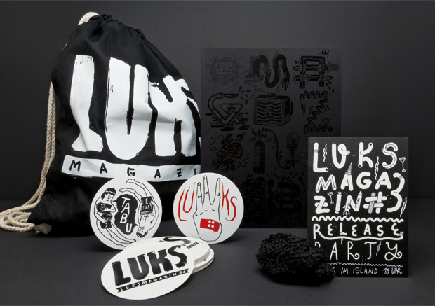 LUKS Magazine was founded in 2011 by a small group of illustration students of the HAW Hamburg to showcase their work and the work of other students at this university. It is a thematic magazine, which is released yearly by a changing group of editors but always under the full responsibility of students. I entered the team with the third issue. The topic was ‘Taboo’, so we decided to push the magazine to a new level, and to use the topic not only as a guide for the included illustrations and texts, but also to translate it into the magazine as an object. The cover resulted in a combination of screenprinted clear varnish on black and laser etchings, which made the title only visible in certain angles. The insides are unopened pages of a Japanese binding and contain the work of about 84 illustrators, writers and designers, on 245 pages. Only the first and the last pages of each chapter are displayed.The thinking behind this was to also place the illustrations under a taboo through the Japanese binding, and to make the reader break the taboo of destroying a magazine which he has just bought.