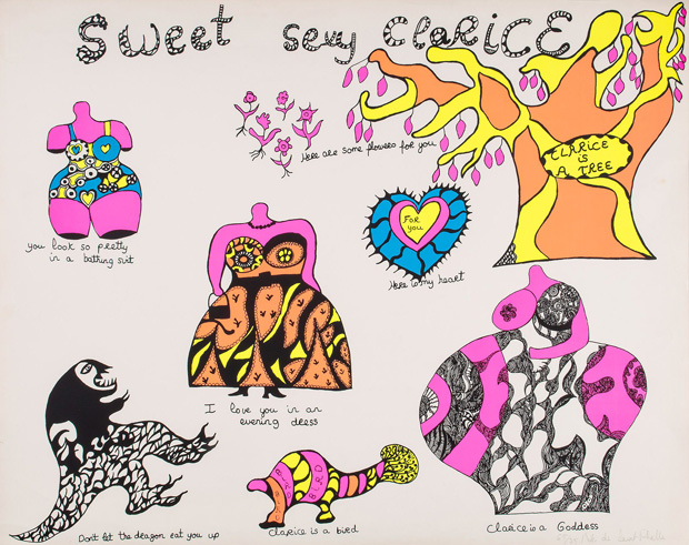When browsing through the books about Saint Phalle in the Pompidou library in Paris, I was immediately impressed by the amount of work that she produced during her career. Her first husband Harry Matthews said in an interview that when she was in her good periods she just got on with it and made a lot of art. She applied her unique style and creativity to many mediums such as children’s book illustrations, which were further translated in sculpture.