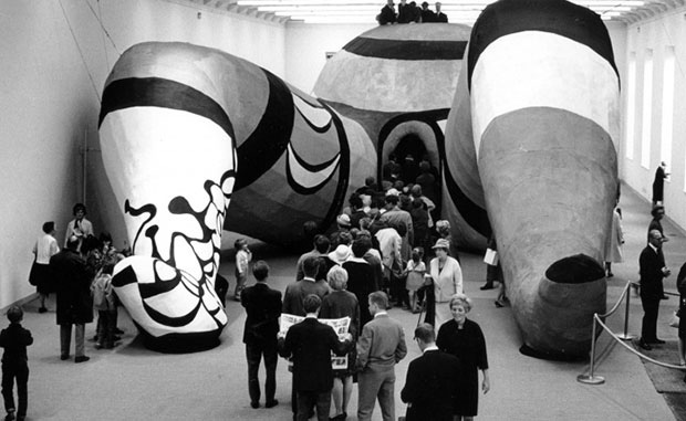 In 1966, Saint Phalle collaborated with Jean Tinguely and Per Olof Ultvedt to create an enormous sculpture of a woman lying down on her back called HON (which translates to ‘she’ in Swedish), exhibited in the Modern Museum of Stockholm. The audience had to enter the woman through her vagina to experience the art piece, something that of course created immense public reaction in newspapers and magazines worldwide.