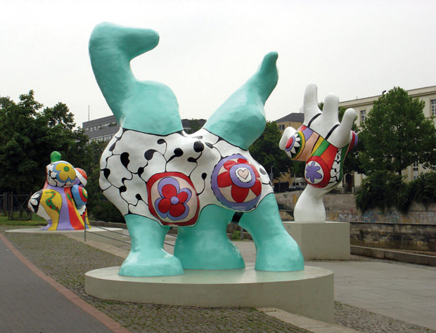Since the mid 60s she created colourful, bulging female figures, The Nana sculptures. Every time I see them in a public space I feel delighted. Their joyful and buoyant appearance are very powerful. Saint Phalle’s granddaughter Bloum Cardenas says: "They are an army of women sent to take over the world". A key aspect of Saint Phalle’s work was to use her large scale public sculptures to reclaim predominantly males-dominated spaces.
