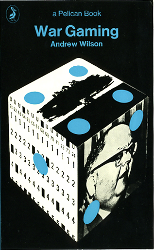 Happily I had no difficulty obtaining consent for the design for War Gaming. The book concerned the introduction of computer based scenarios by organisations such as the Brookings Institute to simulate possible outcomes of atomic warfare. I used photographic images in conjunction with a dice with blue dots. (A confession: the photograph of the atomic bomb explosion was another instance of recycling part of an earlier CND project). In this case the artwork presented a problem, because of the difficulty of drawing precise ellipses for the blue dots of the dice; and for these to register with the black plate. The only way I could resolve this was to build a solid cube (with 30mm square sides). Onto this I pasted the photographs on three sides; and the circles on the other three sides. Then photographed it twice, once for each set of three faces. The two photographs were then superimposed accurately to form the artwork.