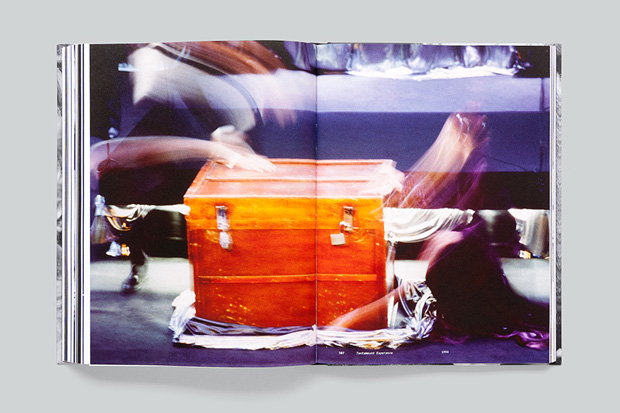 The transcripts and scripts are presented on cut-short pages in between a full-bleed image from that performance – this creates a sort of ‘book-in-a-book’ experience and clearly separates the scripts from the other text registers.