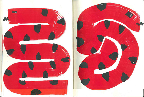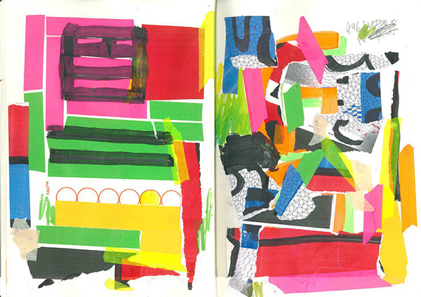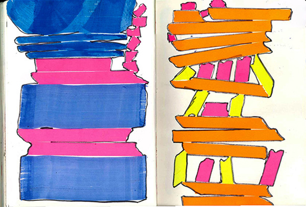 I’ve got these very broad markers with a 6cm wide tip, it’s been really fun to use these to make curvy shapes. They’re so big that I have to use them on the floor and move with my whole body and arms. I also have lots of sketchbooks where I first start with projects. My laptop is of course very important too, as most of the work comes to the screen afterwards.