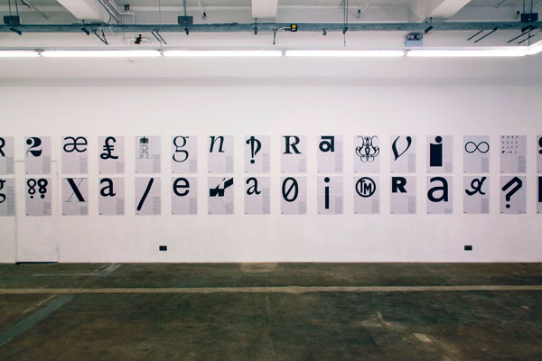 The exhibition will be on show until the end of the week. There are some well-known favourites such as Futura Book ‘o’ chosen by Gareth Hague, and Gill Sans lowercase ‘g’ chosen by Michael Cina. Our contributors over the years have also picked out some typographic curiosities such as The Architectural Alphabet by Johan Steingruber, chosen by Henrik Kubel, and the unforgettable Mr Bear ‘W” chosen by Craig Oldham.