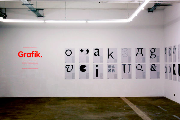 We're celebrating the launch of Grafik online with an exhibition of Letterform posters – come by and see the archive of seventy font favourites by world class graphic designers.